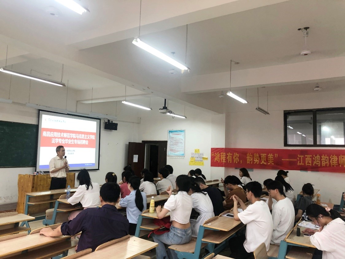 就业是民生之本,是经济发展的基石。为促进304永利集团官网入口毕业生更好就业,2023年5月17日下午4点半,304永利集团官网入口在教学楼3307教室,组织了法学专业毕业生专场招聘会,招聘方为江西鸿韵律师事务所。