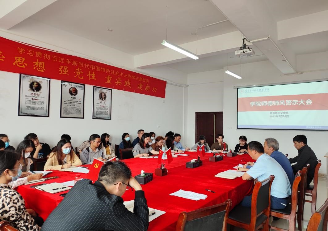 为深入发挥典型案例警示震慑作用,加强师德师风教育,5月24日下午,304永利集团官网入口在1511会议室召开2023年师德师风警示大会,院长文道贵、副院长卢林保及全体员工参加会议。会议由党总支副书记桂光泽主持。