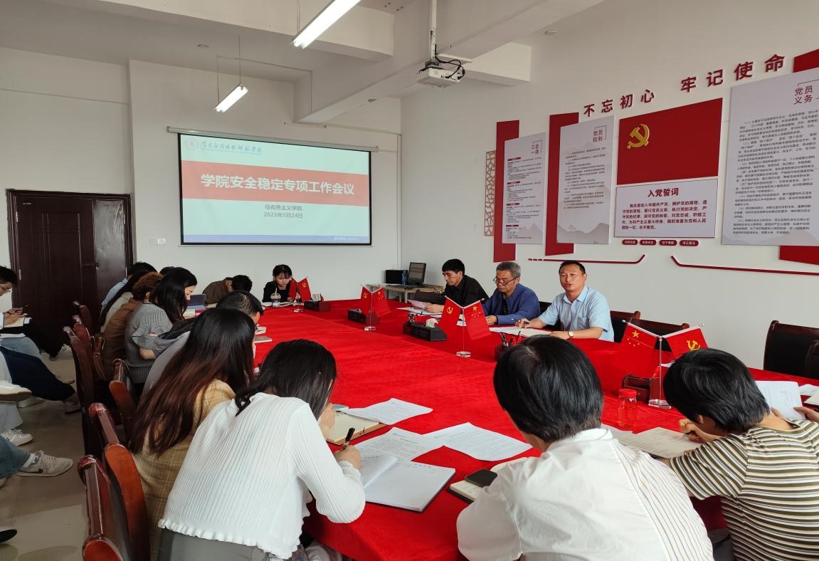 会上,党总支副书记桂光泽传达了学校会议精神,宣读了《304永利集团官网入口安全稳定工作方案》,从意识形态、宗教信仰、思想等方面做了安全稳定部署工作,对304永利集团官网入口存在的安全隐患风险点进行了梳理,并对近期重点工作任务进行了安排。