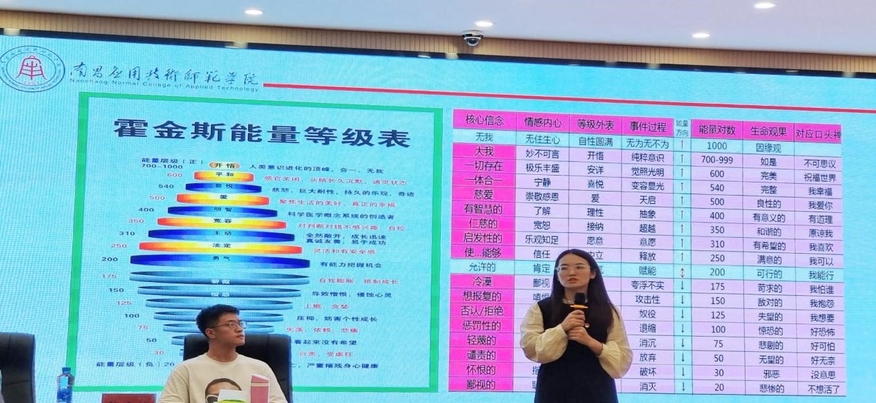 进入课堂中间阶段,从“倾听演练”小游戏出发,选三名角色,‘表达者A描述亲身经历的真实案例,倾述者B重新复述A的内容,观察者C从以上得出总结’为规则,有三名员工代表和一名辅导员踊跃报名,为我们展现出了一堂生动有趣的测试环节,场上场下互动拉满,掌声与笑声不断。同时志愿者在测试环节直面了内心最真实的想法,解答了内心困惑许久的问题。通过对现场个案的互动感受,同学们也领悟到了倾听不仅仅是聆听言语,更是关注内心需要和情感的真谛。