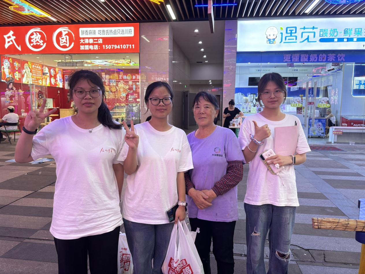 晚上,星火实践队队员们去到社区采访到了58岁的清洁工陈玉芳。这位扎根环卫岗位20余年的老人,用朴实的话语道出了共青垦荒精神在平凡岗位上的延续。作为在共青城生活了30余年的的老居民,陈奶奶感慨道:“当年垦荒队员用双手把荒滩变城市,我这把扫帚就是新时代的‘垦荒工具’,再脏再累的活,只要想着不怕苦、不喊累的传统,总能把城市打扫得清清爽爽!”一把扫帚、一份坚守,陈奶奶用朴实的行动诠释着共青垦荒精神的时代传承。