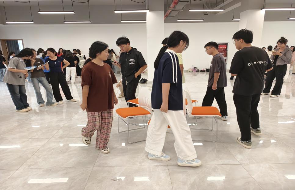 抢凳子游戏更注重同学个人的反应力,动感的音乐响起,同学们围着凳子灵活转动,眼睛紧盯着凳子,时刻准备着。当音乐戛然而止,大家瞬间反应,争先恐后抢坐凳子,有的稳稳坐下,有的遗憾落空,引来阵阵欢笑与惊呼。几轮下来,现场氛围愈发火热,同学们在这充满趣味与竞争的游戏里,彼此熟悉,校园里洋溢着青春欢快的气息。