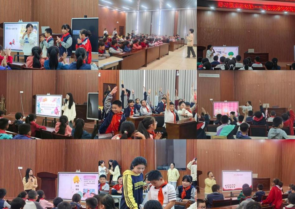 不仅如此,在深入讲解抗战精神的同时,宣讲团成员还引导同学们认识到良好的行为习惯对人生成长同样重要,强调“小习惯,大未来”,鼓励大家从日常生活中的点滴做起,培养勤奋学习、遵守纪律、团结友爱的好习惯。在中场休息期间,宣讲团成员特别设计了游戏环节。孩子们争先恐后地举手参与,个个劲头十足,遵守规则又充满活力。现场欢笑不断,气氛既热闹非凡又井然有序,每个人都在快乐中投入其中。