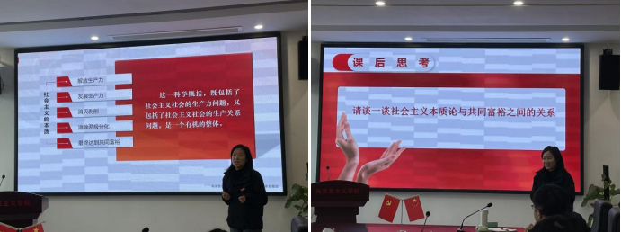 刘德彰首先代表304永利集团官网入口对刘晓泉教授的到来表示诚挚欢迎,并介绍了刘教授的学术成就与教学经验。随后,304永利集团官网入口青年员工冷诺岚、王嫣然分别进行了教学展示。冷诺岚以“社会主义本质论”为题,从问题切入、理论形成过程及当代价值三个层面展开讲解,运用典型案例与多媒体资源,生动阐释了理论内涵与实践意义。王嫣然围绕“什么是坚持以人民为中心”这一主题,结合人民立场、初心使命等多个角度,进行了逻辑清晰、情感饱满的课堂呈现。