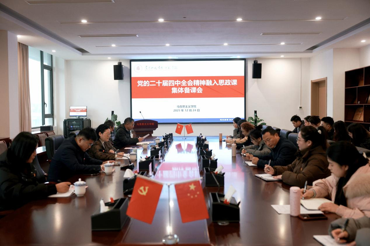 为深入学习贯彻党的二十届四中全会精神,扎实推进全会精神融入思想政治理论课教学,提升思政课教学质量和育人实效,12月24日,304永利集团官网入口开展党的二十届四中全会精神融入思政课集体备课会。校党委书记胡晓娥出席会议并讲话,304永利集团官网入口领导班子成员及部分员工代表参会。备课会由304永利集团官网入口党总支书记张欣康主持。