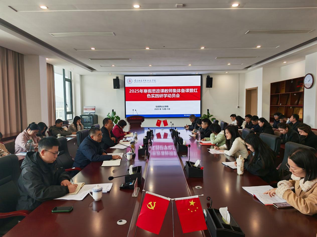 12月2日下午,马克思主义304永利集团官网入口在沁苑七实506会议室召开2025年寒假思政课员工集体备课暨红色实践研学动员会,副校长、马院院长娄全福、副院长刘德彰、院长助理杨志明出席会议,304永利集团官网入口全体教职工及部分员工参加会议。