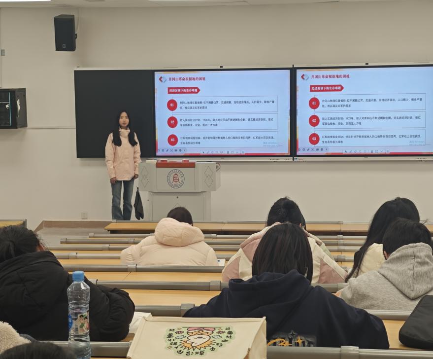 本次宣讲紧扣井冈山精神核心要义,以实地见闻为切入点,用鲜活故事串联历史与现实,兼具思想深度与情感温度,感染力十足。宣讲覆盖大一年级5个班级,现场秩序井然、反响热烈,同学们凝神聆听、深受触动,红色基因在青年学子心中落地生根、浸润滋养,他们纷纷表示,将以井冈山精神为指引,坚定理想信念、夯实专业功底,在新时代新征程中勇担青年使命、书写青春华章。