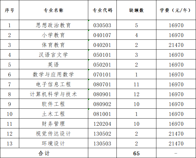 一、缺额专业及计划